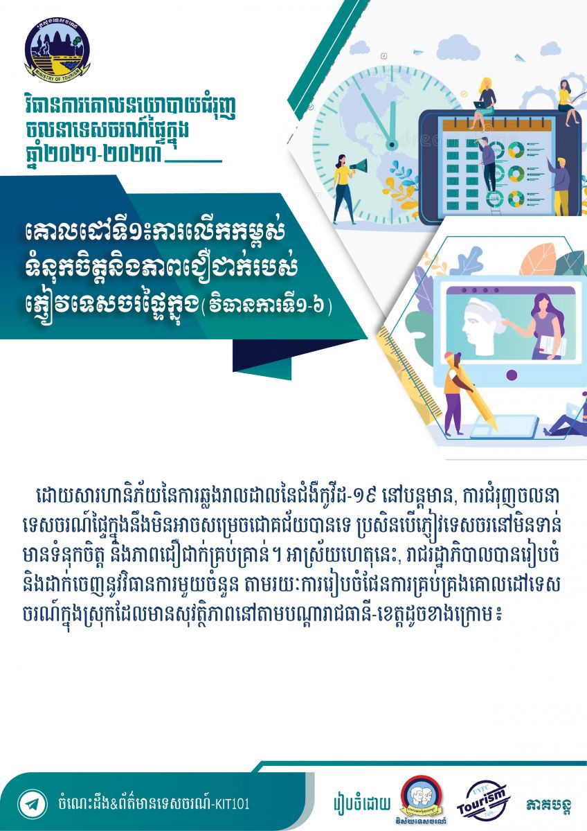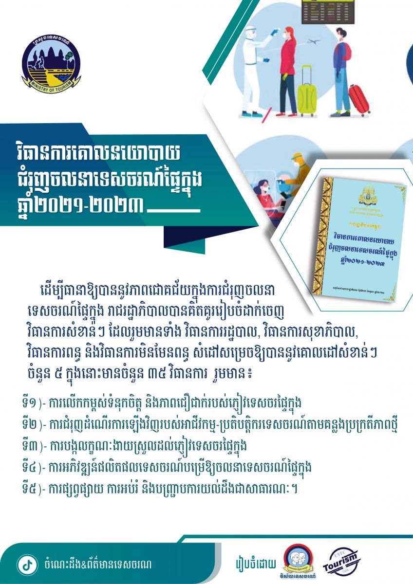 ខ្លឹមសារសំខាន់ៗនៃសៀវភៅវិធានការគោលនយោបាយជំរុញចលនាទេសចរណ៍ផ្ទៃក្នុងឆ្នាំ២០២១-២០២៣ - វេបសាយ ស.ស.យ.ក. វិស័យទេសចរណ៍