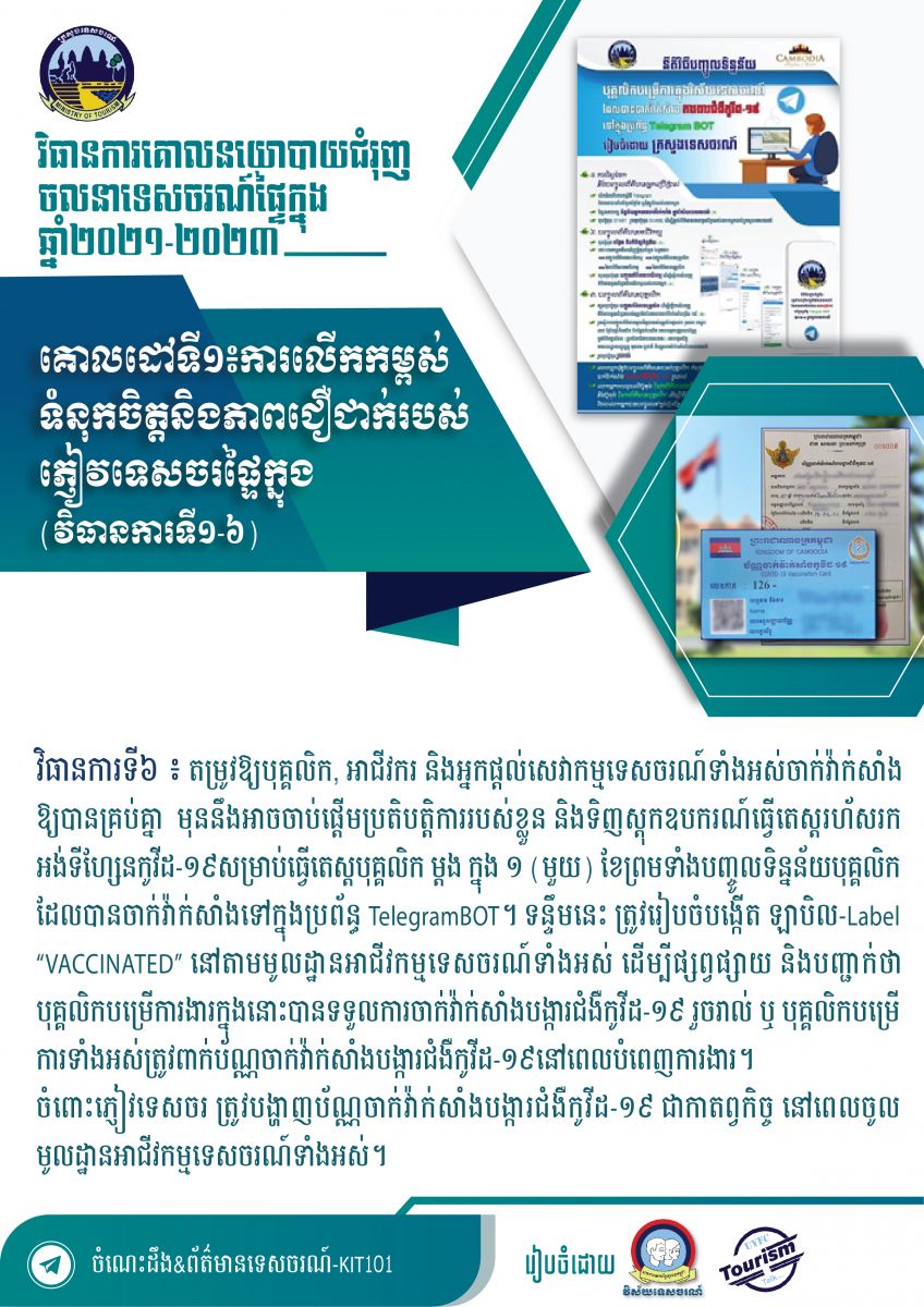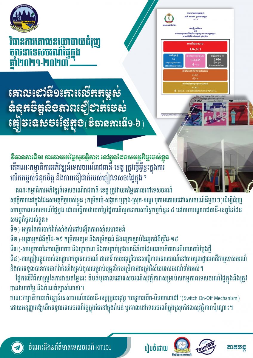ខ្លឹមសារសំខាន់ៗនៃសៀវភៅវិធានការគោលនយោបាយជំរុញចលនាទេសចរណ៍ផ្ទៃក្នុងឆ្នាំ២០២១-២០២៣