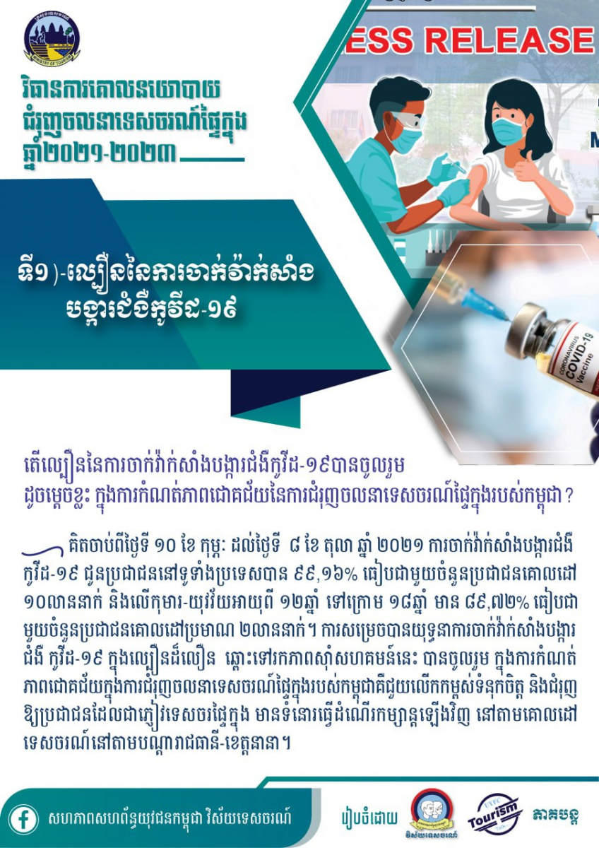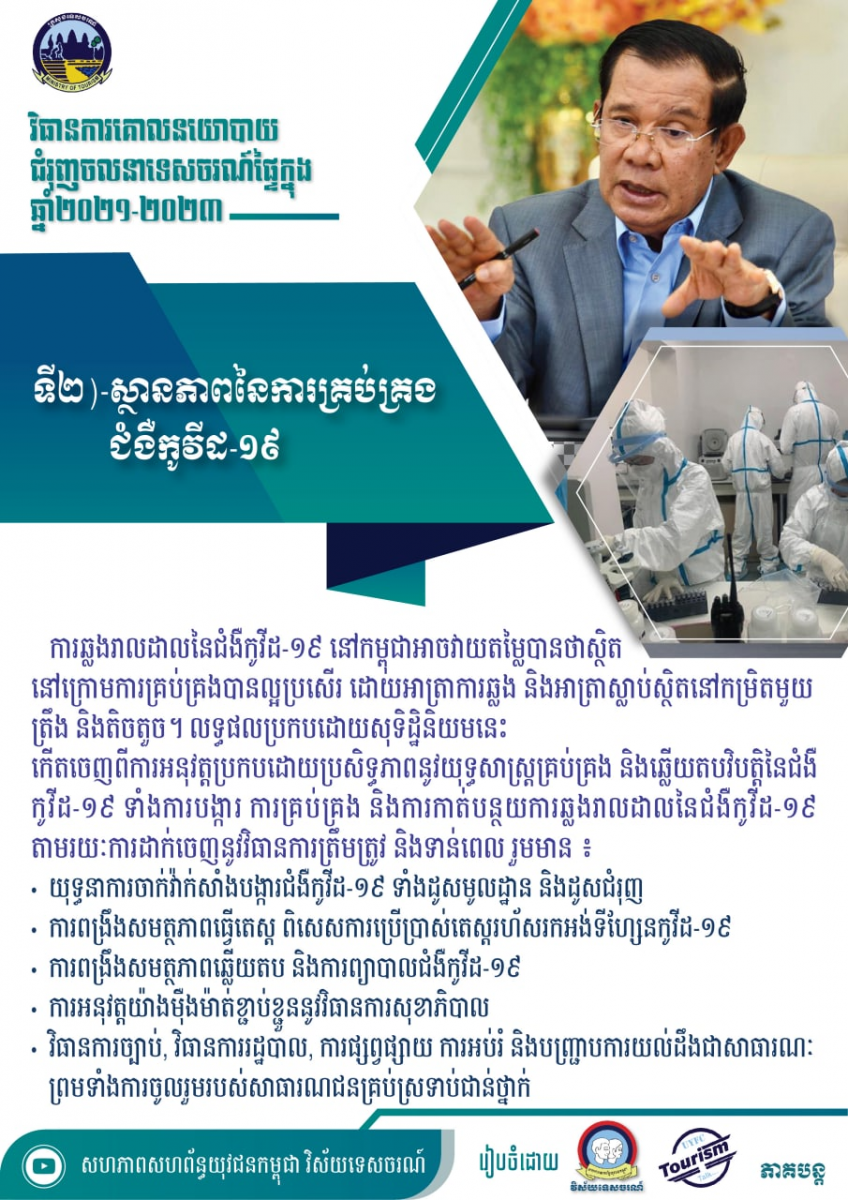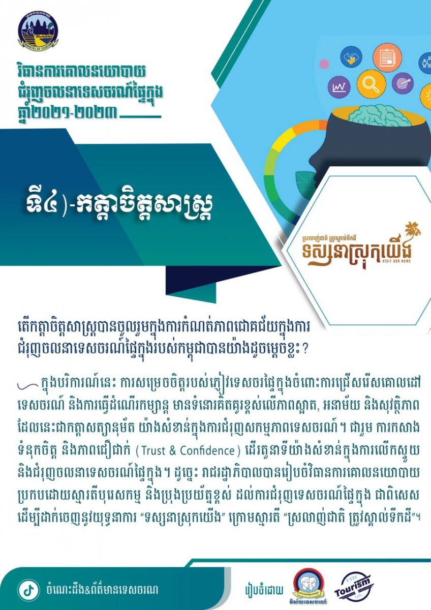 ខ្លឹមសារសំខាន់ៗនៃសៀវភៅវិធានការគោលនយោបាយជំរុញចលនាទេសចរណ៍ផ្ទៃក្នុងឆ្នាំ២០២១-២០២៣ - វេបសាយ ស.ស.យ.ក. វិស័យទេសចរណ៍
