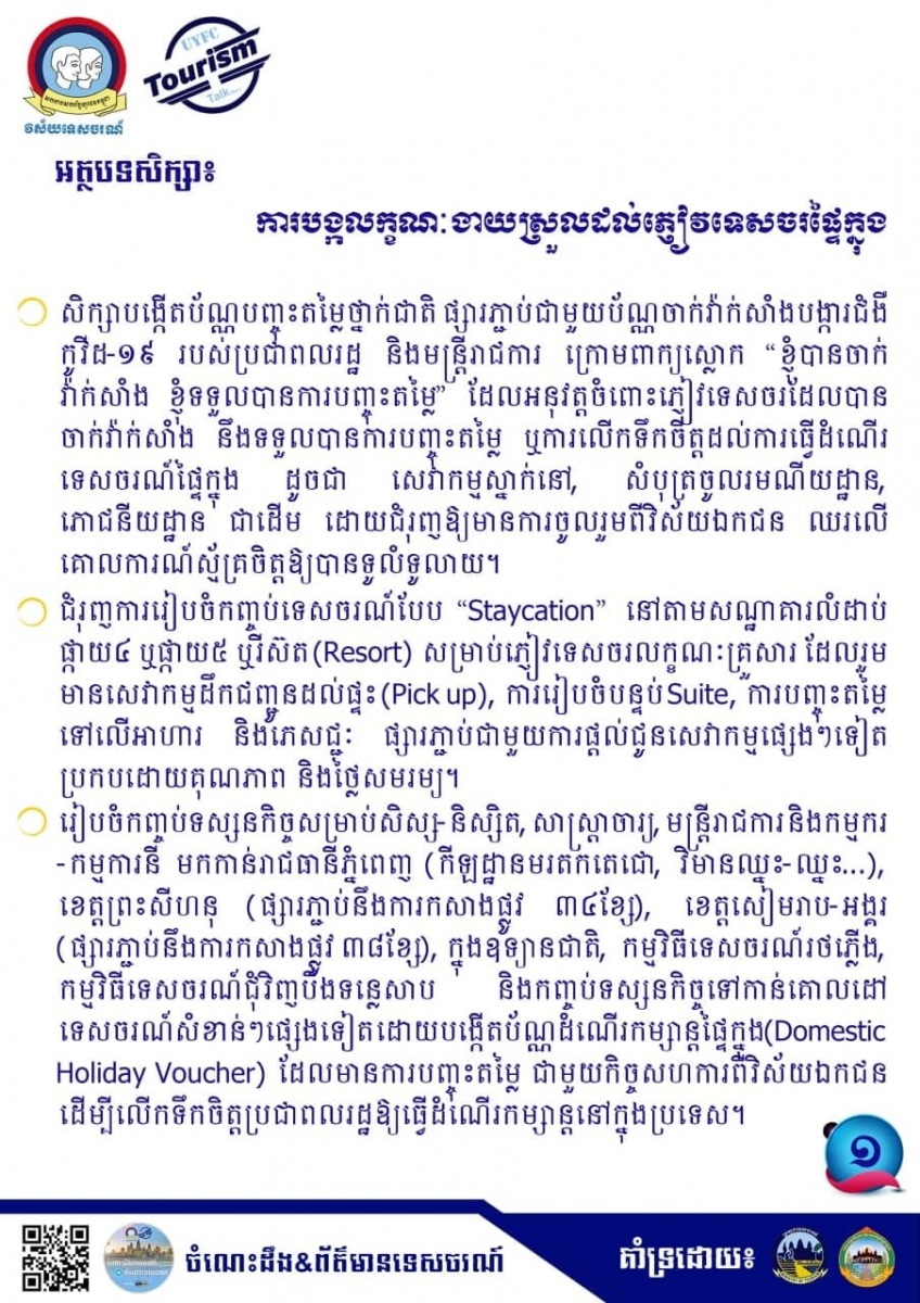 អត្ថបទសិក្សា ការបង្កលក្ខណះងាយស្រួលដល់ភ្ញៀវទេសចរផ្ទៃក្នុង