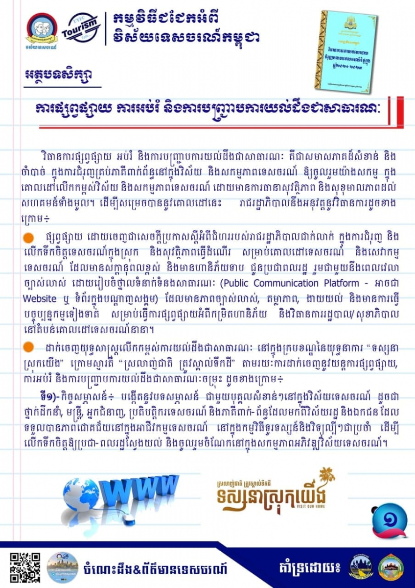 អត្ថបទសិក្សា៖ ការផ្សព្វផ្សាយ ការអប់រំ និងការបញ្រ្ចាបការយល់ដឹងជាសាធារណៈ - វេបសាយ ស.ស.យ.ក. វិស័យទេសចរណ៍