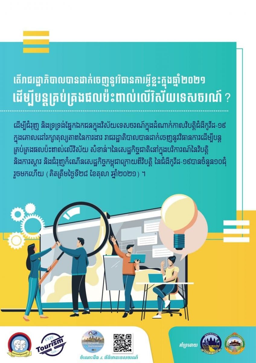 តើរាជរដ្ឋាភិបាលបានដាក់ចេញនូវវិធានការអ្វីខ្លះក្នុងឆ្នាំ២០២១ ដើម្បីបន្តគ្រប់គ្រងផលប៉ះពាល់លើវិស័យទេសចរណ៍កម្ពុជា?