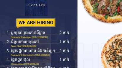 ឱកាសការងារក្នុងវិស័យទេសចរណ៍ Pizza 4P’s (Cambodia) Co., Ltd