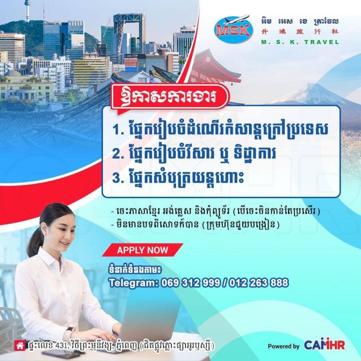ឱកាសការងារក្នុងវិស័យទេសចរណ៍ ក្រុមហ៊ុន MSK Travel