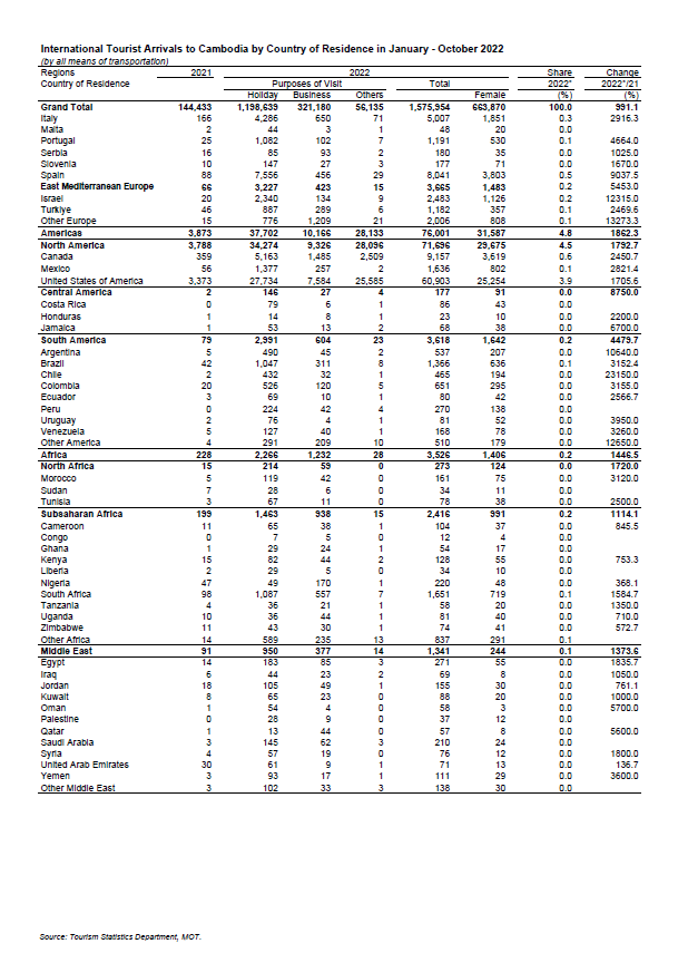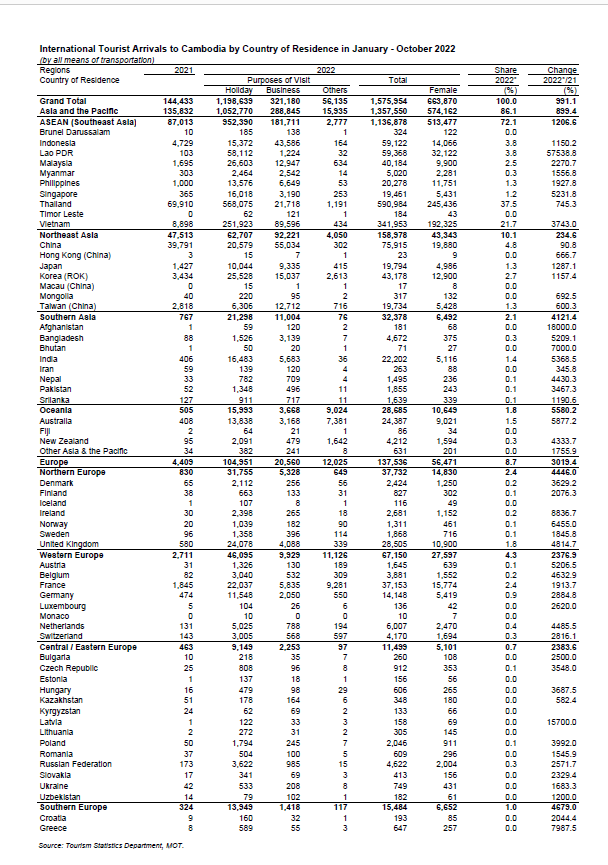 របាយការណ៍សិត្ថិទេសចរណ៍នៅក្នុងខែតុលា ឆ្នាំ2022 - វេបសាយ ស.ស.យ.ក. វិស័យទេសចរណ៍