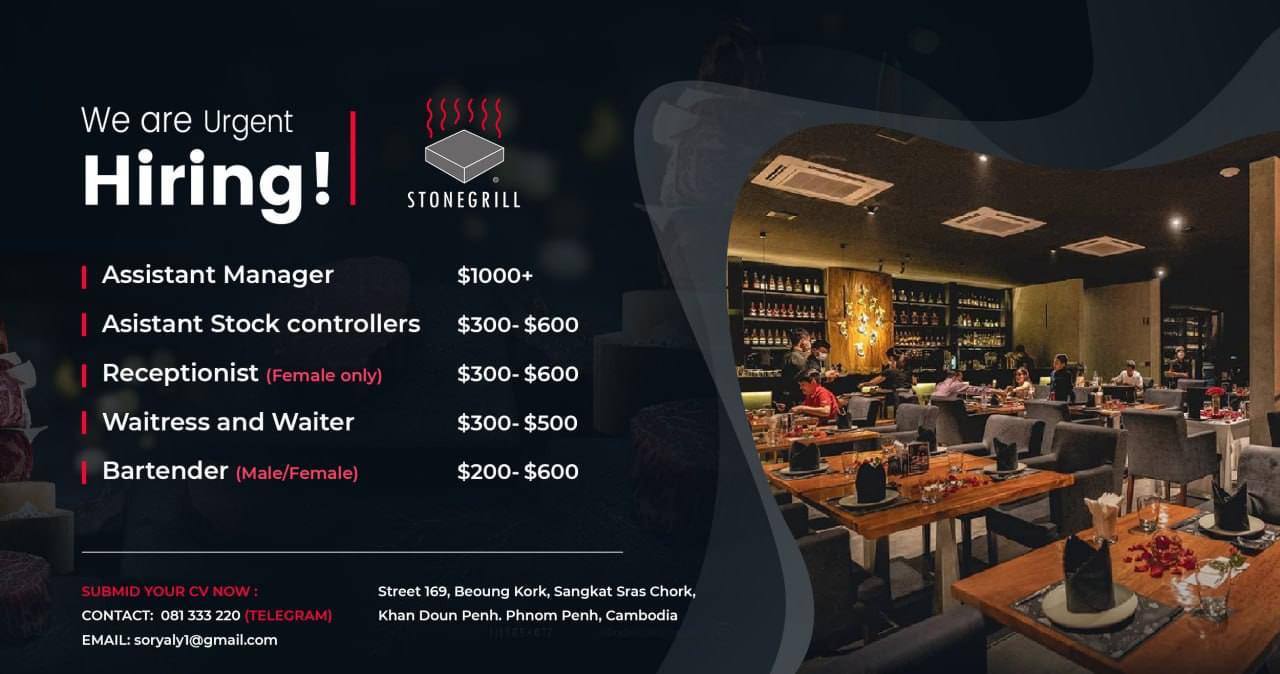 ឱកាសការងារក្នុងវិស័យទេសចរណ៍ Stonegrill Restaurant