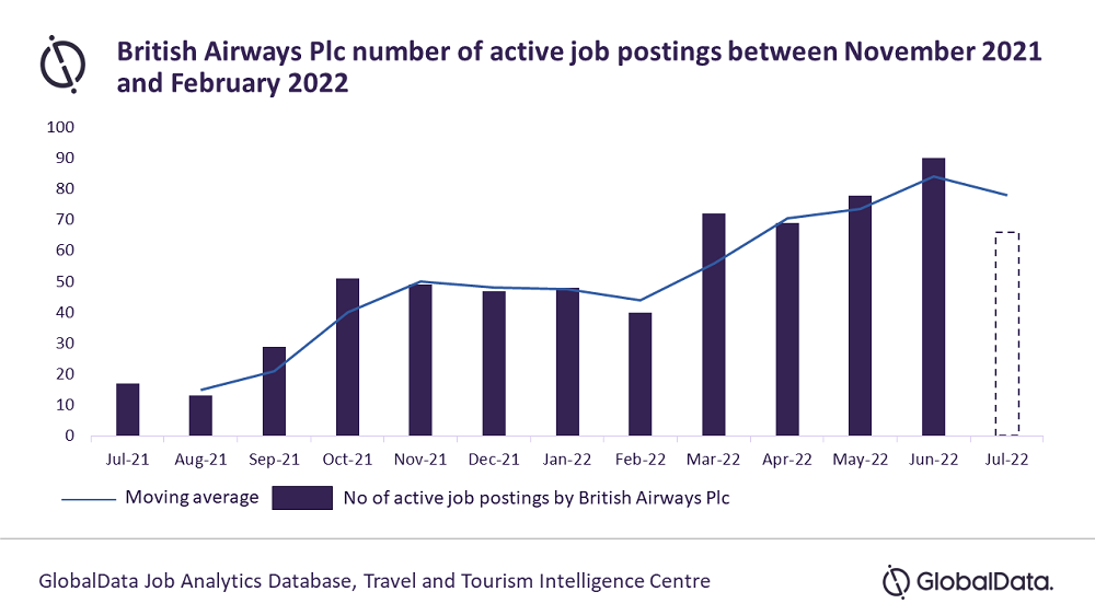 However, the recruitment drive has fallen short after British Airways reportedly cut as many as 10,000 jobs during the pandemic. Furthermore, according to hiring trends data on GlobalData’s Job Analytics Database, British Airways had not increased the number of job postings (active jobs) on its career pages until at least March 2022. GlobalData found that active job postings declined by 18.4% between November 2021 and February 2022.