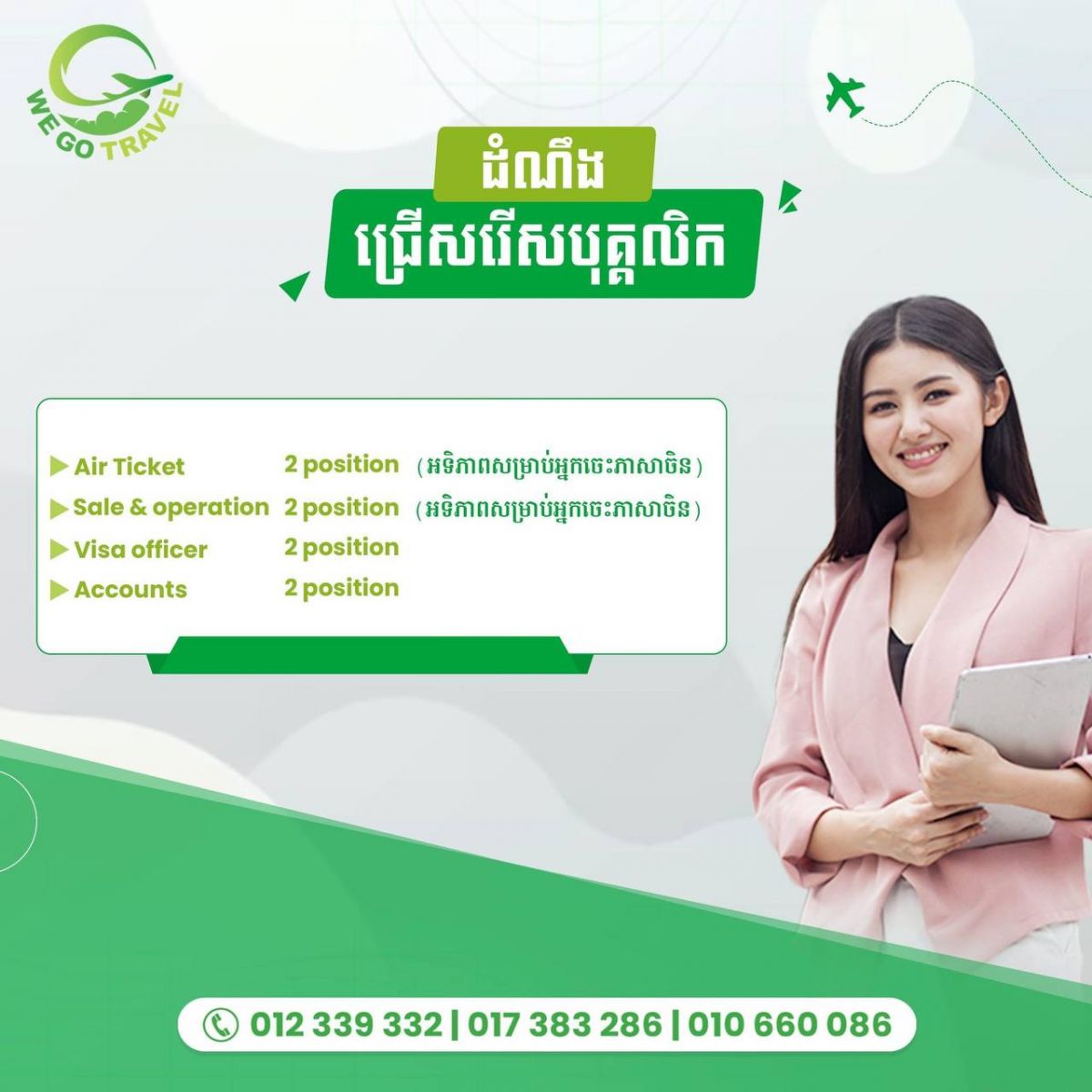 ក្រុមហ៊ុន វីហ្គោ ត្រាវែល ( We go Travel ) យើងខ្ញុំត្រូវការជ្រើសរើសបុគ្គលិកជាច្រើនផ្នែកដូចជា៖