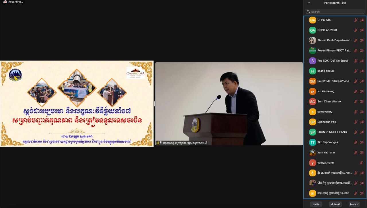 ឯកឧត្តមអគ្គនាយកក៏បានស្នើសុំឱ្យសិក្ខាកាមទាំងអស់យកចិត្តទុកដាក់ស្តាប់ និងទទួលយកបទពិសោធន៍ពីវាគ្មិនពាក់ព័ន្ធទៅនឹងប្រធានបទសំខាន់ៗ ដូចជា (១).យុទ្ធសាស្ត្រសៀវភៅស ស្តីពី China Ready សម្រាប់ទេសចរណ៍កម្ពុជា, (២).ស្តង់ដាវាយតម្លៃអប្បបរមា និងលក្ខណៈវិនិច្ឆ័យទាំង៧ សម្រាប់បញ្ជាក់គុណភាព និងត្រៀមទទួលទេសចរចិន, និង (៣).ការស្នើសុំការវាយតម្លៃបញ្ជាក់កម្រិតគុណភាពទទួលស្គាល់សេវាកម្មទេសចរណ៍ China Ready Accreditation System”។