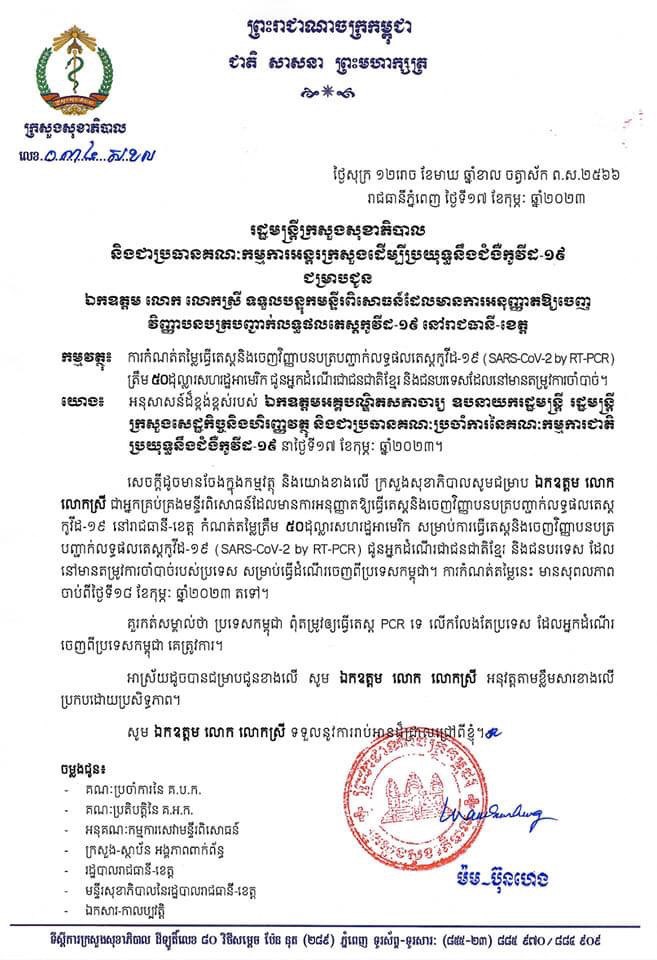 ការកំណត់តម្លៃធ្វើតេស្ត និងចេញវិញ្ញាបនបត្របញ្ចាក់លទ្ធផលតេស្តកូវីដ-១៩