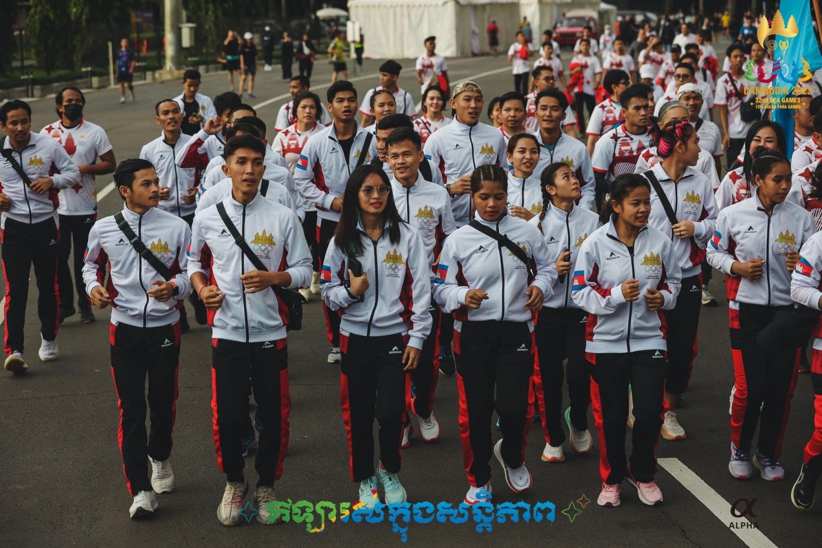 ពិធីដង្ហែដ៏មានអត្ថន័យនេះ បានធ្វើឡើងក្រោមវត្តមានលោក ហោ សារុន រដ្ឋលេខាធិការក្រសួងទេសចរណ៍ និងជាបេសកជនពិសេស CAMSOC អមដំណើរដោលោកបណ្ឌិត សេង ប៊ុនសុង ទីប្រឹក្សាជាន់ខ្ពស់ NOCC និងលោក អ៊ីវ ហ៊ាង ឯកអគ្គរាជទូតកម្ពុជាប្រចាំប្រទេសឥណ្ឌូនេស៊ី ហើយក៏មានការចូលរួមពីលោក Muhadjir Effendy រដ្ឋមន្ដ្រីស្ដីទីក្រសួងយុវជន និងកីឡាឥណ្ឌូនេស៊ី, លោក Raja Sapta Oktohari ប្រធានគណៈកម្មាធិការជាតិអូឡាំពិកឥណ្ឌូនេស៊ី ព្រមទាំងឯកអគ្គរាជទូត និងមន្ដ្រីទូតបណ្ដាប្រទេសក្នុងតំបន់ រួមទាំងកីឡាករ-កីឡាការិនីកម្ពុជា និងឥណ្ឌូនេស៊ីសរុបប្រមាណ ៤០០នាក់។