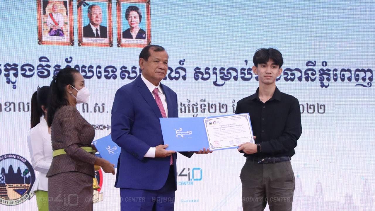 នាព្រឹកថ្ងៃទី២២ ខែសីហា ឆ្នាំ២០២២ ឯកឧត្តម ហ៊ុន ម៉ានី ប្រធានគណៈកម្មការអប់រំ យុវជន កីឡា ធម្មការ កិច្ចការសាសនា វប្បធម៌ និងទេសចរណ៍ នៃរដ្ឋសភា, ជាប្រធានសហភាពសហព័ន្ធយុវជនកម្ពុជា និង ជាប្រធានក្រុមប្រឹក្សាភិបាលនៃមជ្ឈមណ្ឌលកម្ពុជា ៤.០ និង ឯកឧត្តម ថោង ខុន រដ្ឋមន្ត្រីក្រសួងទេសចរណ៍ និងជាប្រធានក្រុមការងាររាជរដ្ឋាភិបាល និងឯកជន ដើម្បីស្តារ និងលើកស្ទួយវិស័យទេសចរណ៍កម្ពុជា ក្នុង និងក្រោយវិបត្តិជំងឺកូវីដ-១៩ អញ្ជើញជាគណៈអធិបតីក្នុង «ពិធីបើកវគ្គបណ្តុះបណ្តាលអក្ខរកម្មឌីជីថលក្នុងវិស័យទេសចរណ៍ សម្រាប់រាជធានីភ្នំពេញ និងខេត្តសៀមរាប» ដោយមានអ្នកចូលរួមពីក្រសួងស្ថាប័នពាក់ព័ន្ធ ដៃគូអភិវឌ្ឍក្នុងស្រុក និងបរទេស តំណាងវិស័យឯកជន ព្រមទាំងសិក្ខាកាម សរុបប្រមាណ ៣០០ នាក់ តាមការចូលរួមផ្ទាល់ និងពីចម្ងាយ ក្នុងនោះ មានសិក្ខាកាមតំណាង៦២រូបបានទទួលវិញ្ញាបនបត្រស្តីពីការសិក្សាអក្ខរកម្មឌីជីថលក្នុងវិស័យទេសចរណ៍។