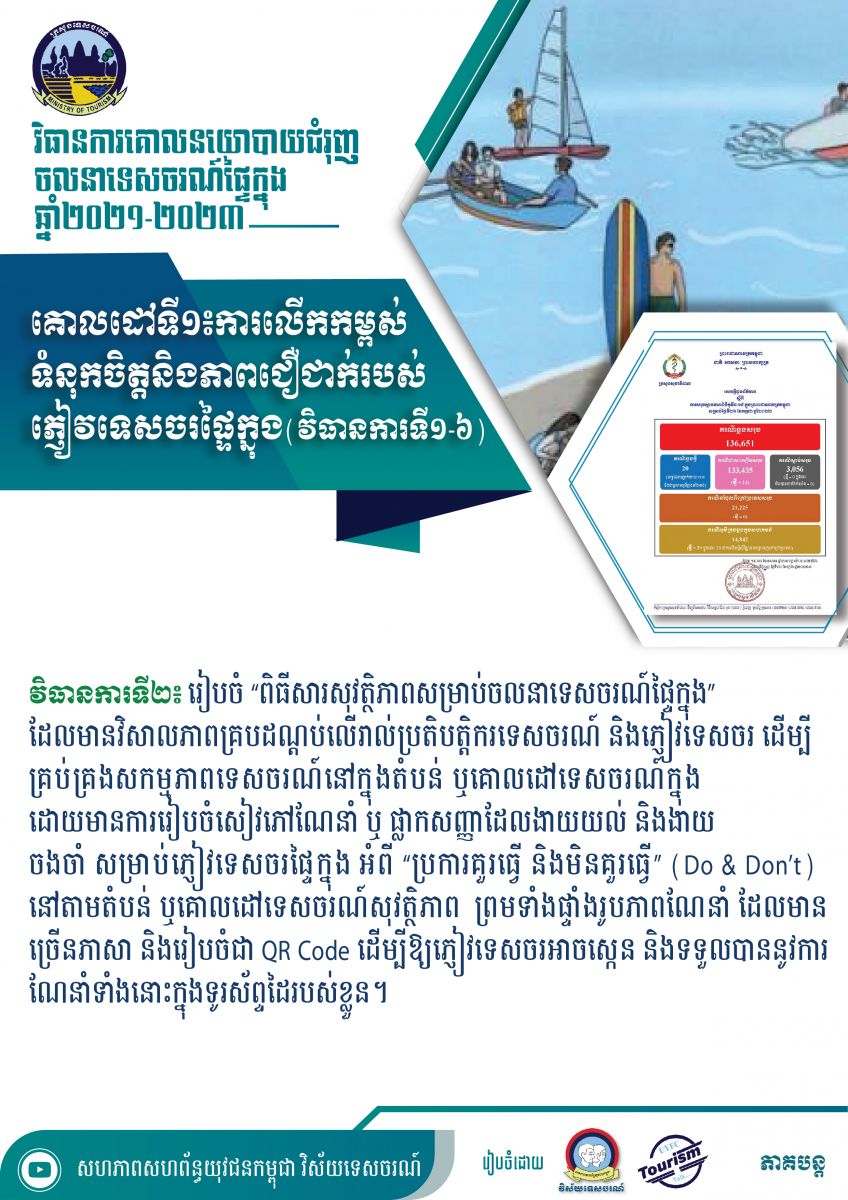 ខ្លឹមសារសំខាន់ៗនៃសៀវភៅវិធានការគោលនយោបាយជំរុញចលនាទេសចរណ៍ផ្ទៃក្នុងឆ្នាំ២០២១-២០២៣