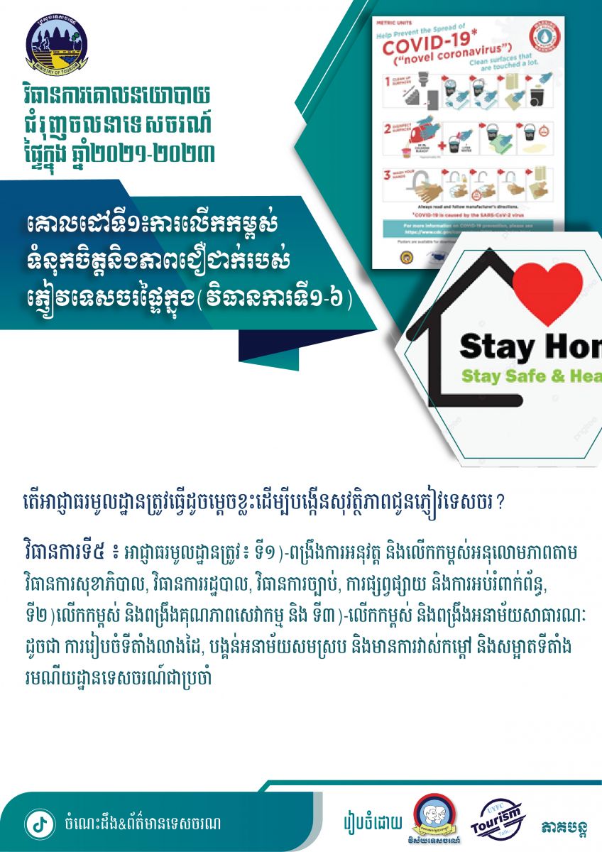 ខ្លឹមសារសំខាន់ៗនៃសៀវភៅវិធានការគោលនយោបាយជំរុញចលនាទេសចរណ៍ផ្ទៃក្នុងឆ្នាំ២០២១-២០២៣ - វេបសាយ ស.ស.យ.ក. វិស័យទេសចរណ៍