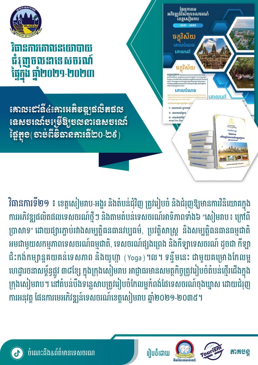ខ្លឹមសារសំខាន់ៗនៃសៀវភៅវិធានការគោលនយោបាយជំរុញចលនាទេសចរណ៍ផ្ទៃក្នុងឆ្នាំ ២០២១-២០២៣ (ត) - វេបសាយ ស.ស.យ.ក. វិស័យទេសចរណ៍