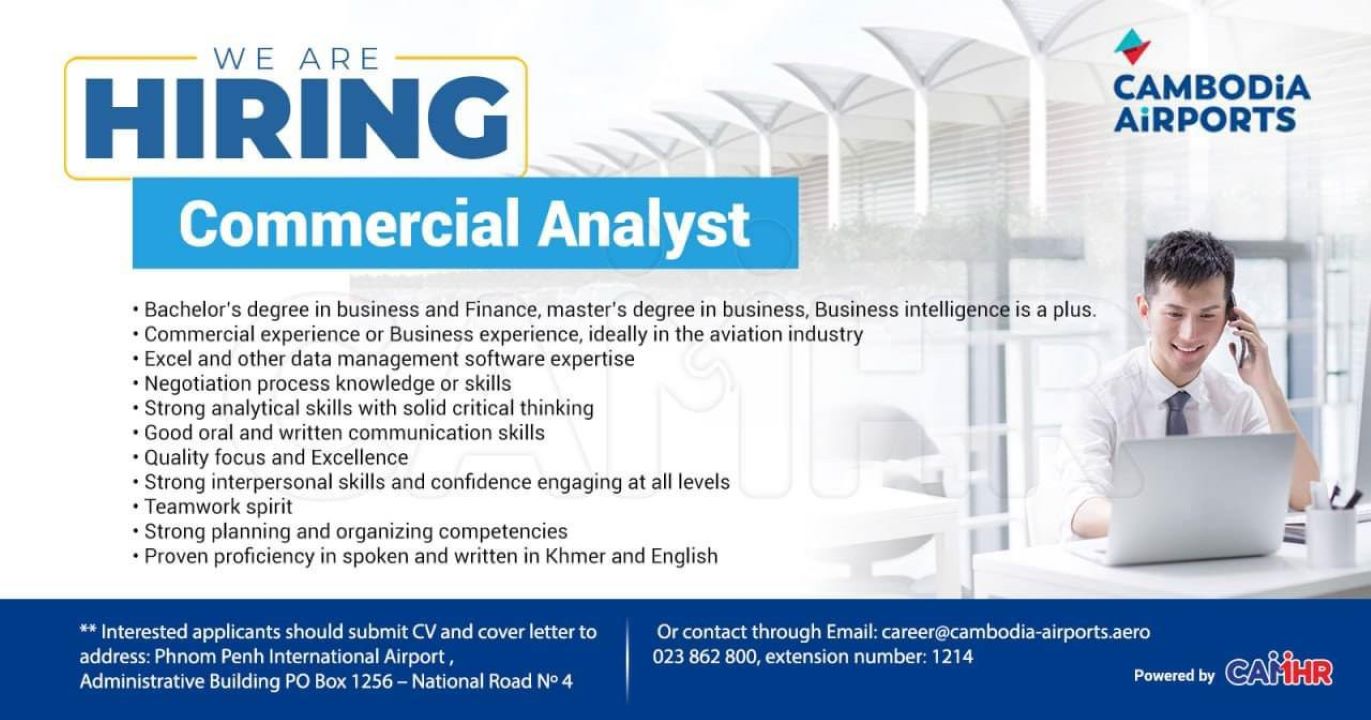 Cambodia Airports ត្រូវការជ្រើសរើសបុគ្គលិកផ្នែក Commercial Analyst :