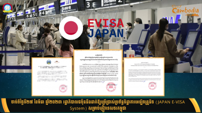 អានបន្តចាប់ពីថ្ងៃទី២៧ ខែមីនា ឆ្នាំ២០២៣ រដ្ឋាភិបាលជប៉ុននឹងដាក់ឱ្យប្រើប្រាស់ប្រព័ន្ធទិដ្ឋាការអេឡិចត្រូនិច (JAPAN E-VISA System) សម្រាប់ភ្ញៀវទេសចរកម្ពុជា