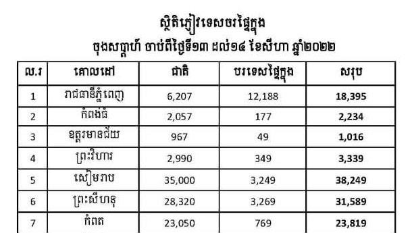 អានបន្តចុងសប្តាហ៍ទី២ខែសីហា កម្ពុជាទទួលបានភ្ញៀវសរុប២៣៣,៩៣៣នាក់