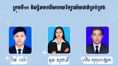 អានបន្តអបអរសាទរដល់ក្រុមនិស្សិតទាំង៥ក្រុម ដែលបានជាប់ក្នុងវគ្គសម្ភាសន៍នៃកម្មវិធីការប្រគួតសរសេរ«ផែនការអភិវឌ្ឍគោលដៅទេសចរណ៍គំរូ»