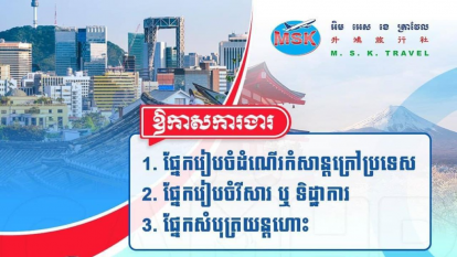 ឱកាសការងារក្នុងវិស័យទេសចរណ៍ ក្រុមហ៊ុន MSK Travel