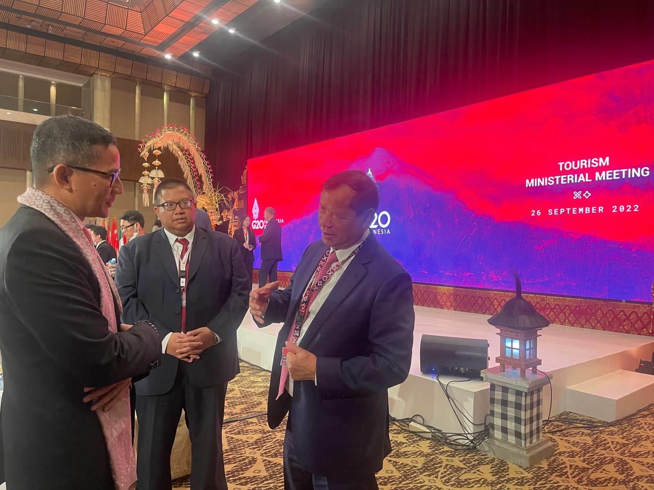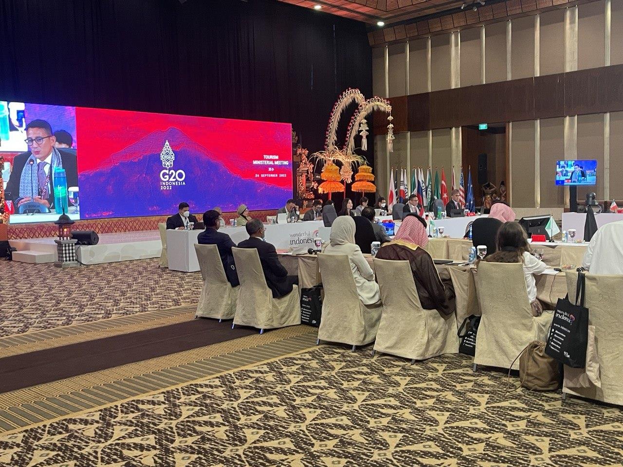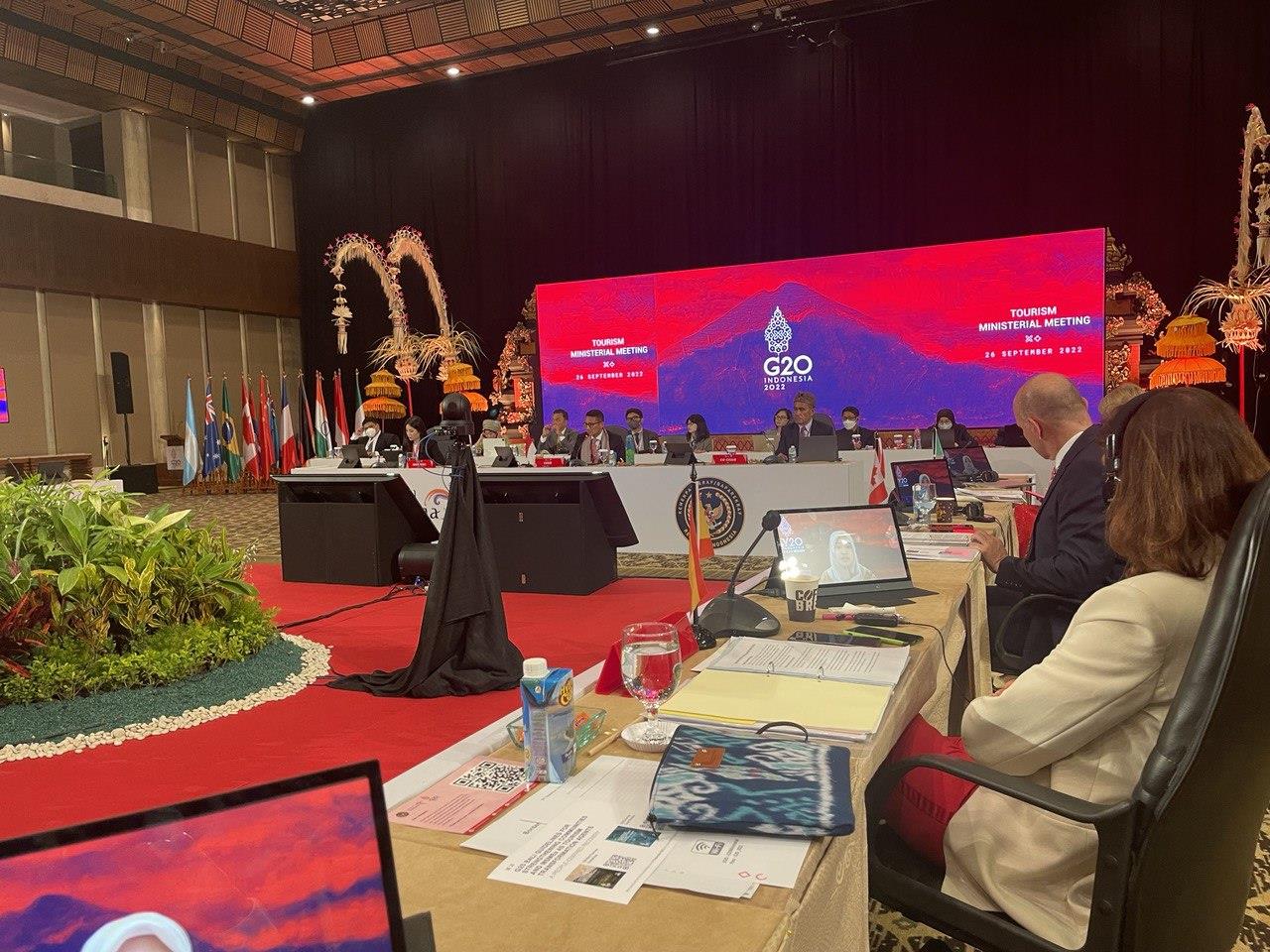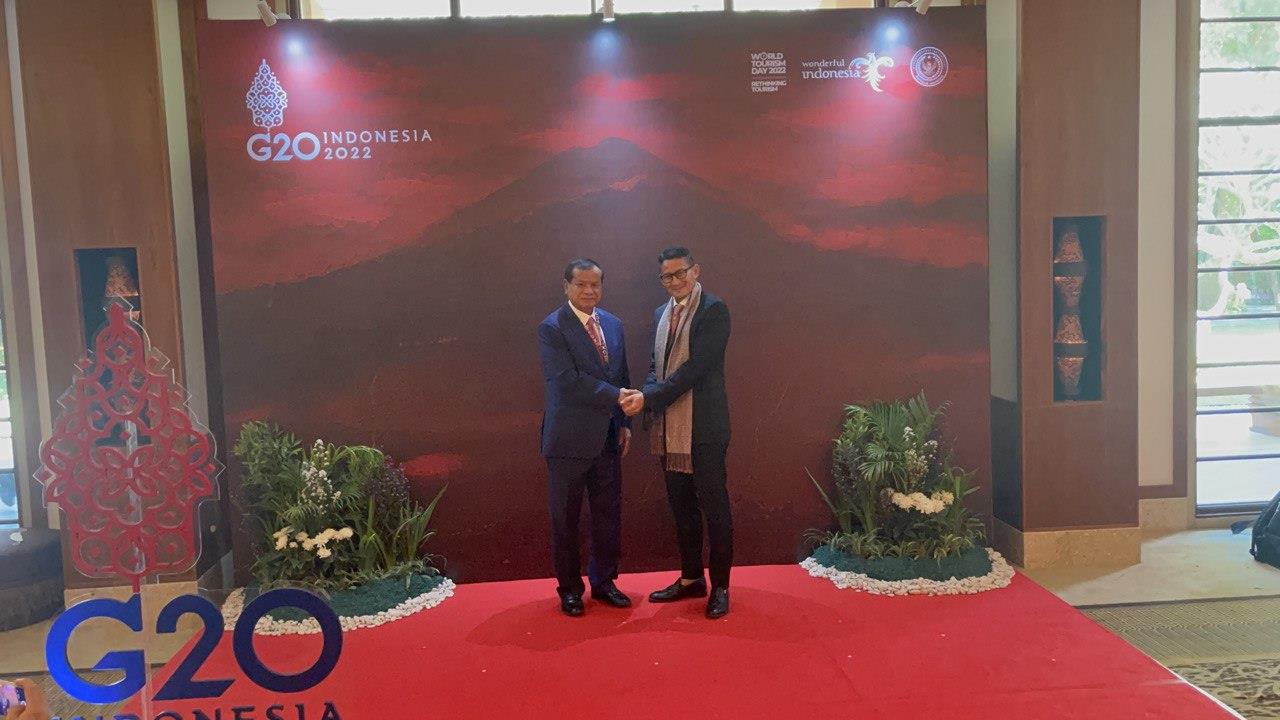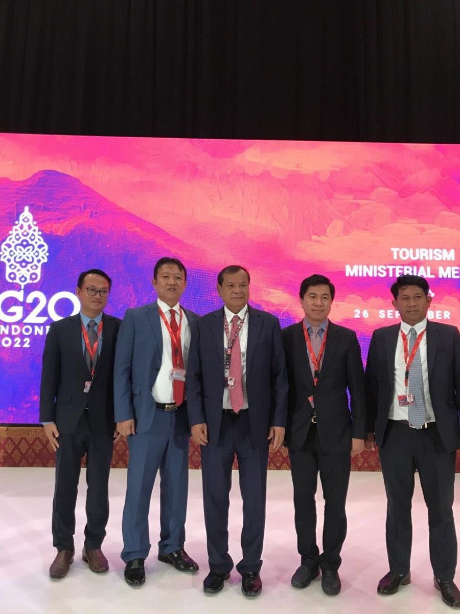 (បាលី,ឥណ្ឌូនេស៊ី)៖ តបតាមការអញ្ជើញរបស់ឥណ្ឌូនេស៊ីជាម្ចាស់ផ្ទះ លោក ថោង ខុន រដ្ឋមន្ត្រីក្រសួងទេសចរណ៍កម្ពុជា នៅថ្ងៃទី២៦ ខែកញ្ញា ឆ្នាំ២០២២នេះ បានដឹកនាំគណៈប្រតិភូក្រសួងទេសចរណ៍កម្ពុជា ចូលរួមកិច្ចប្រជុំថ្នាក់រដ្ឋមន្ត្រីទេសចរណ៍ប្រទេស G20 (G20 Tourism Ministerial Meeting) នៅទីក្រុងបាលី ប្រទេសឥណ្ឌូនេស៊ី។