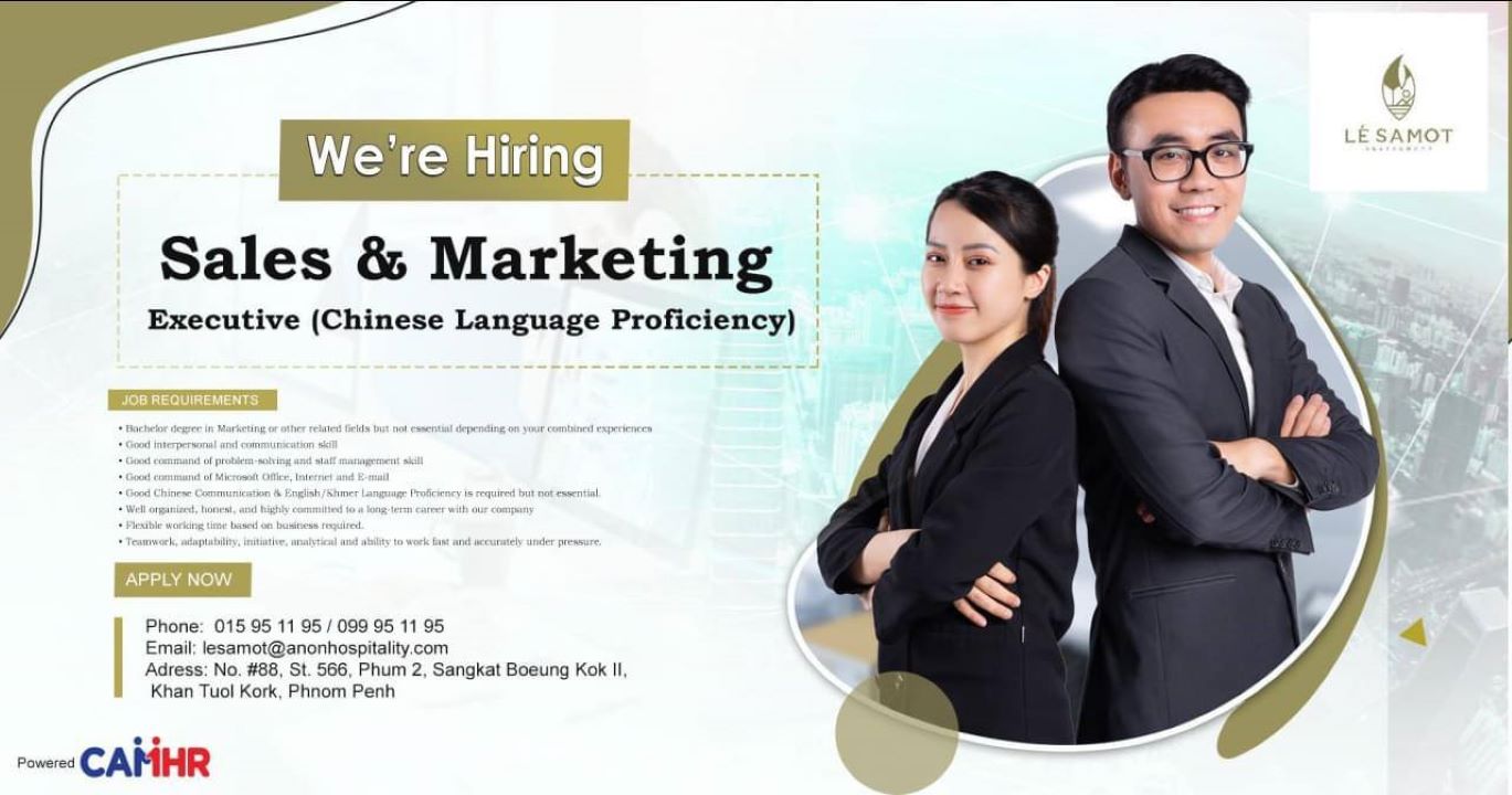 LÉ SAMOT Restaurant យើងខ្ញុំ កំពុងជ្រើសរើសបុគ្គលិកផ្នែក Sales & Marketing Executive (Chinese Language Proficiency Preferred).