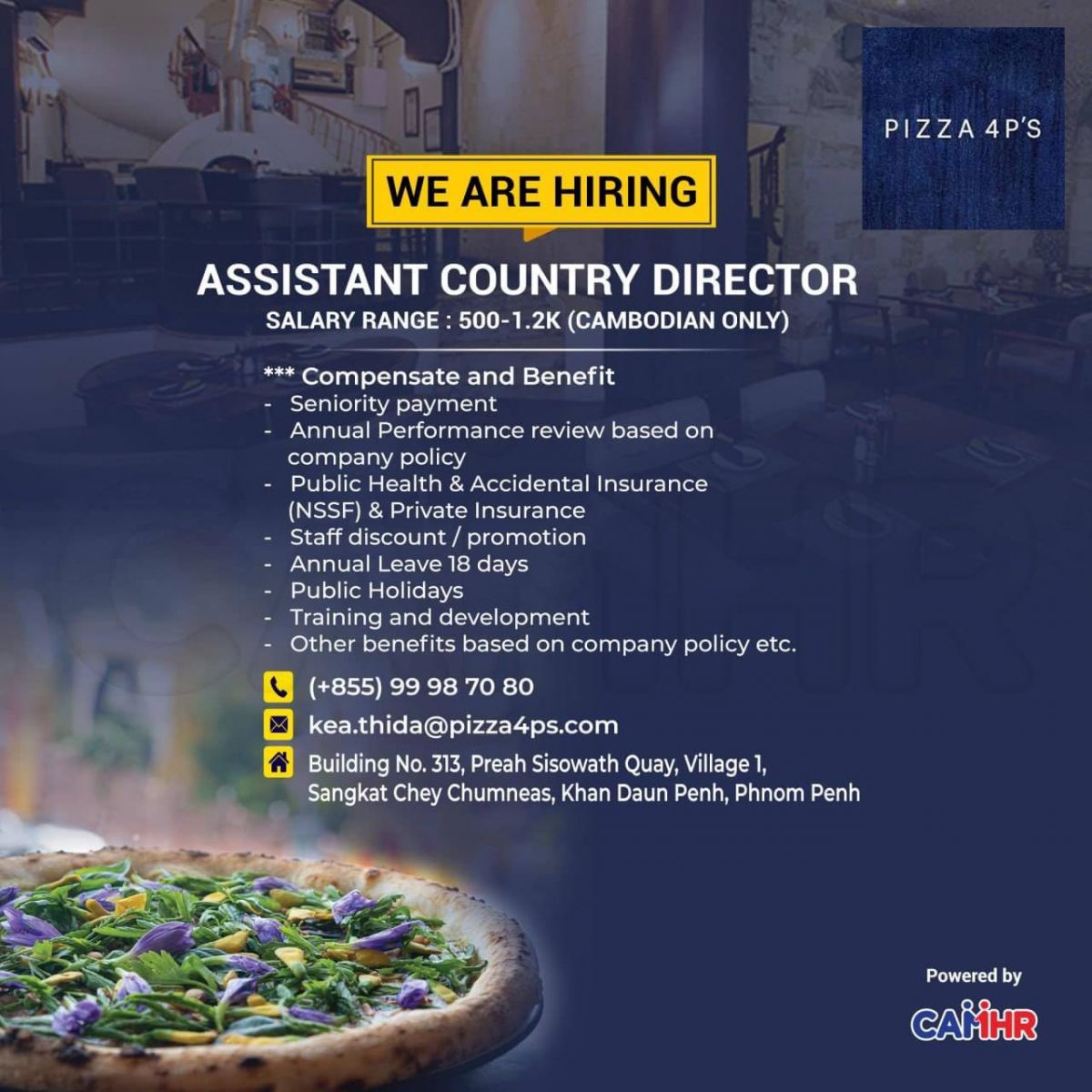 Pizza 4P’s (Cambodia) Co., Ltd យើងខ្ញុំត្រូវការជ្រើសរើសបុគ្គលិកផ្នែក Assistant Country Director (500-1,200USD)