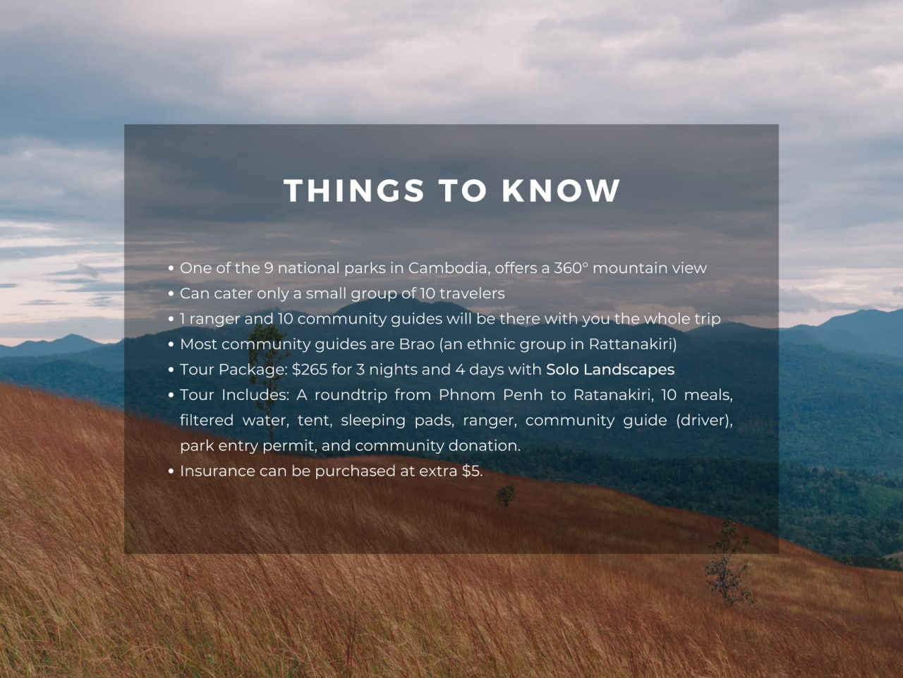 📍សកម្មភាពកម្សាន្តវិញគឺភ្ញៀវទេសចរអាចទស្សនាធម្មជាតិនិងសត្វព្រៃជាច្រើនប្រភេទ បោះតង់ សម្រាកលម្ហែកាយ ដើរកម្សាន្តព្រៃ។