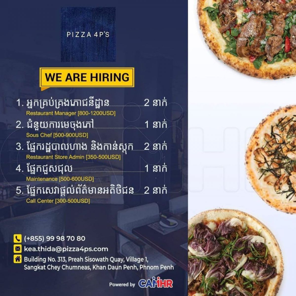Pizza 4P’s (Cambodia) Co., Ltd យើងខ្ញុំត្រូវការជ្រើសរើសបុគ្គលិក ច្រើននាក់បន្ទាន់